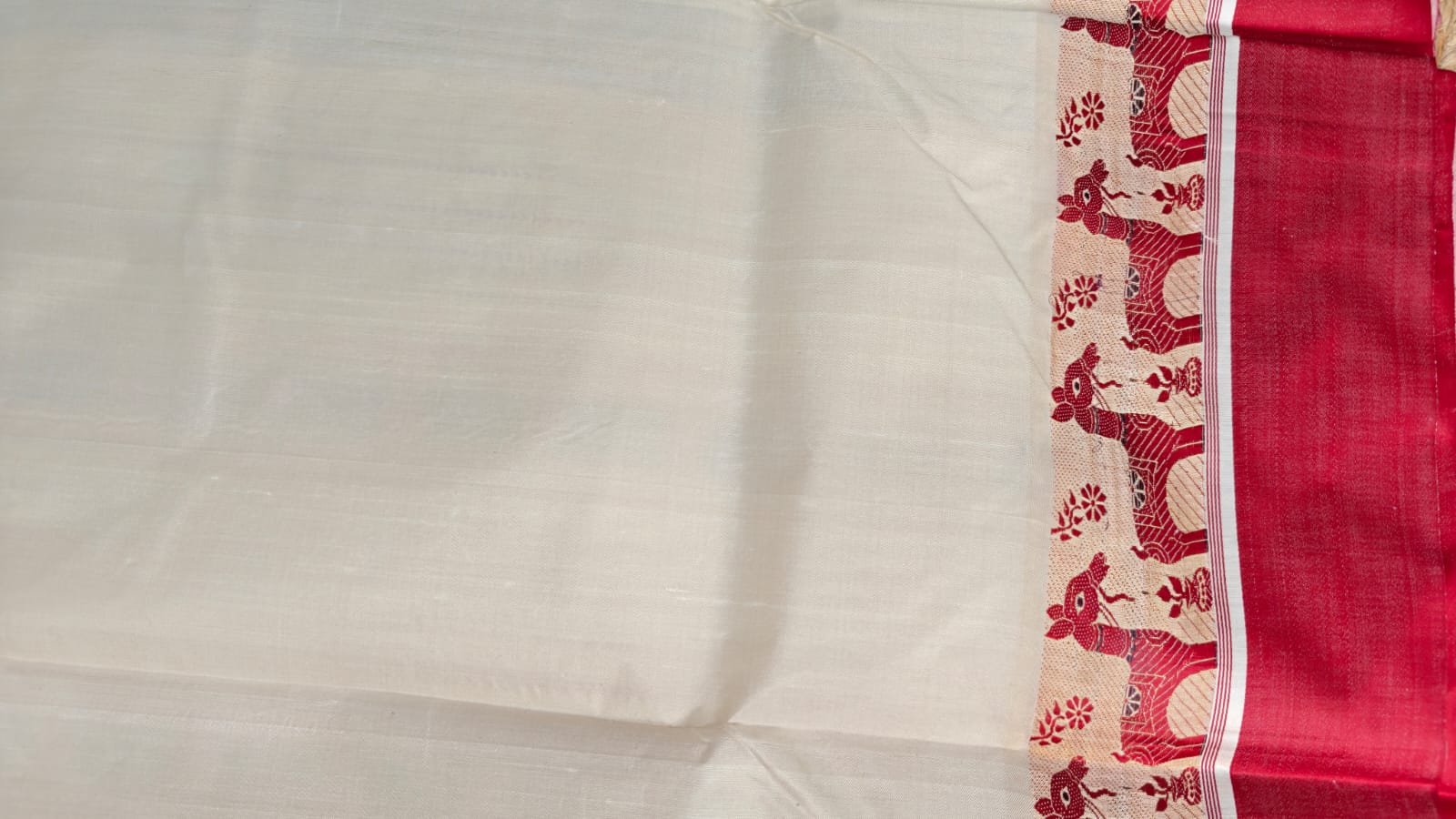 Sold out Authentic Garad Mulberry Silk Saree – Creamy White Elegance Infused with Baluchori and Assam Weaving Traditions