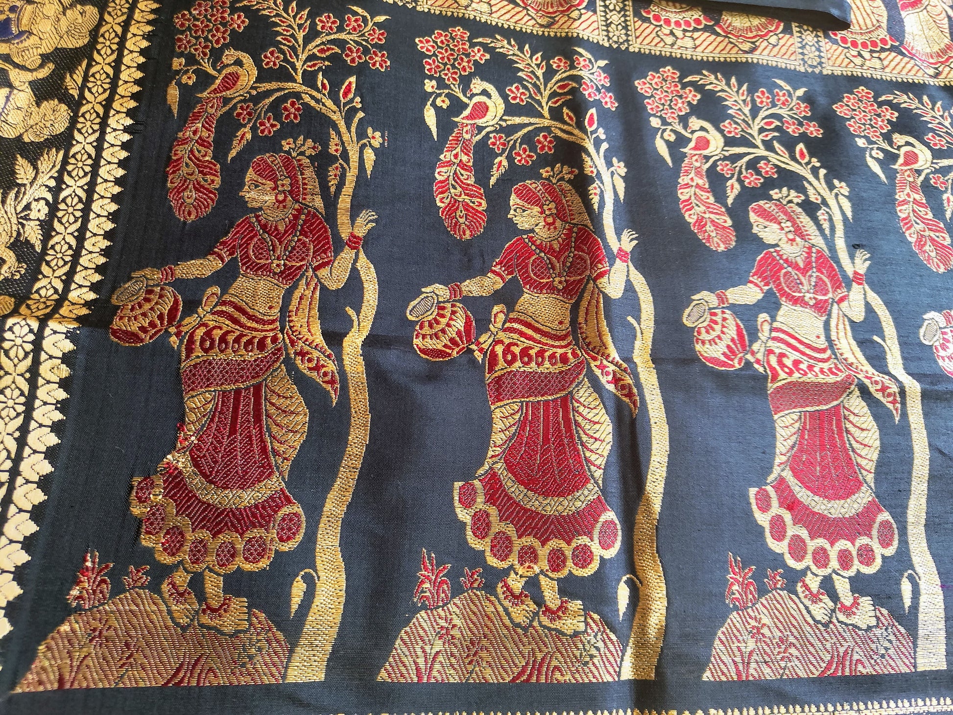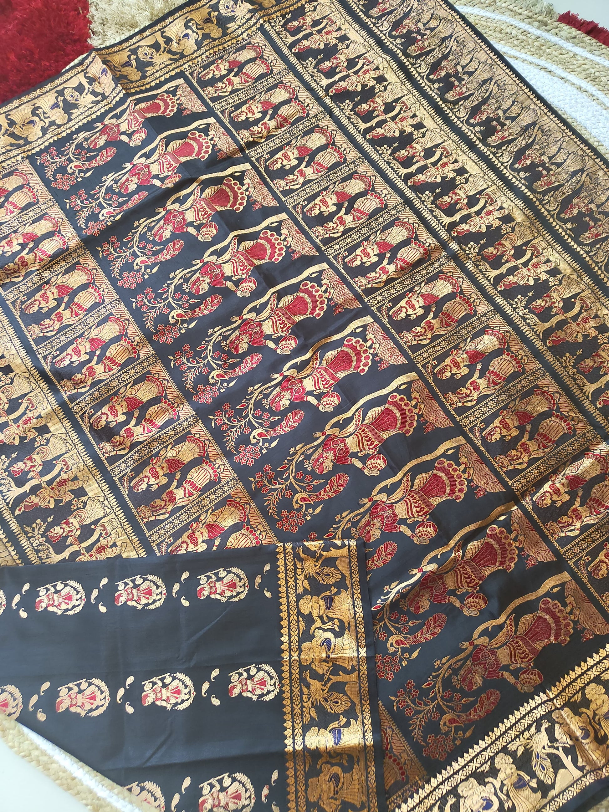 Sold out Pure Baluchari Authentic Saree in Black with Copper Resham and Red-Blue Minakari Work,- Sold in Bangalore