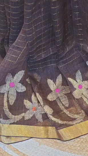 Sold out Handwoven Linen Jamdani Saree with Zari Checkwork