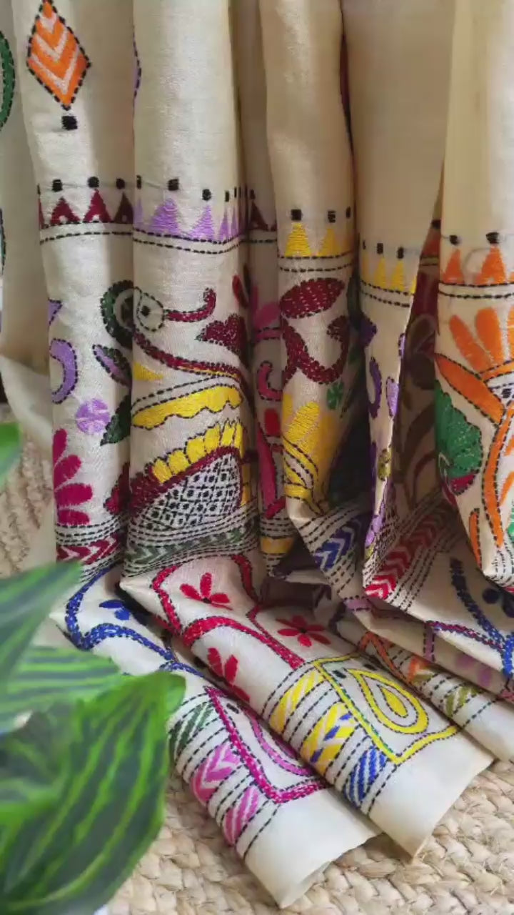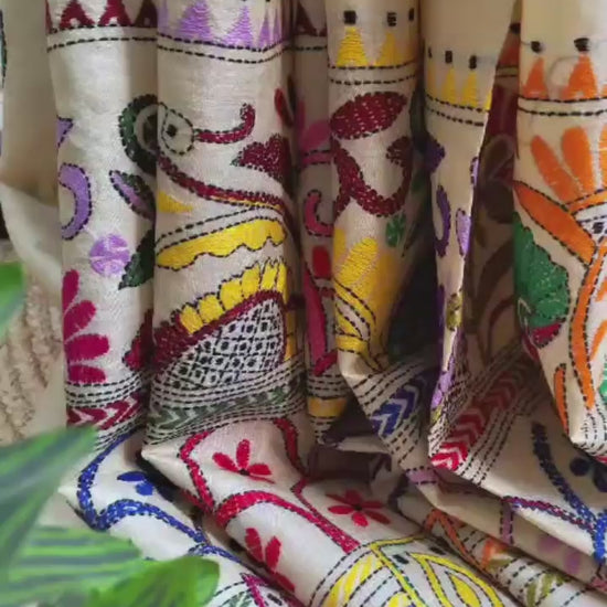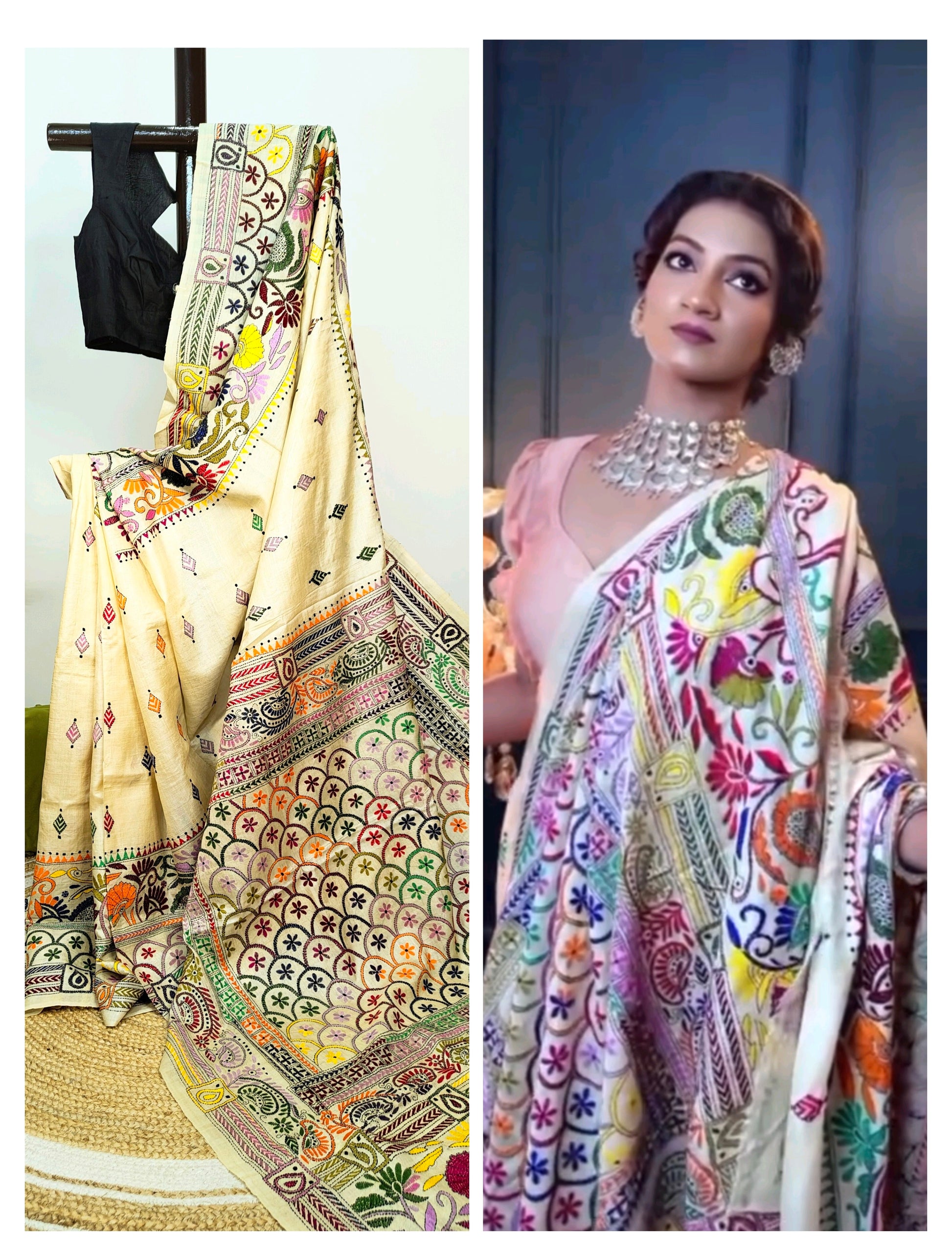 - Colour: Elegant beige base with intricate hand Kantha work.