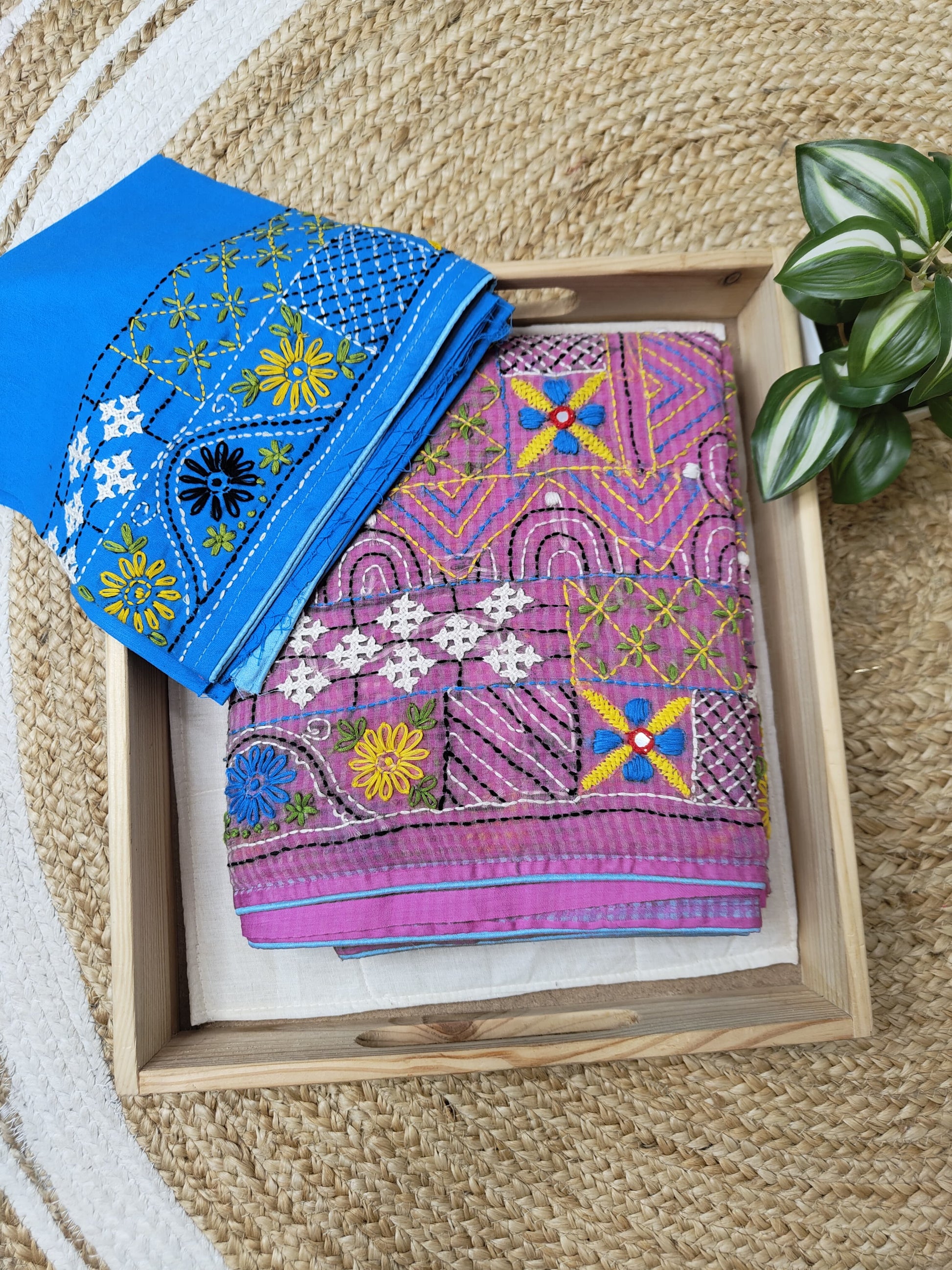 Pure Cotton Kota Check Saree with Lumbani Hand Embroidery