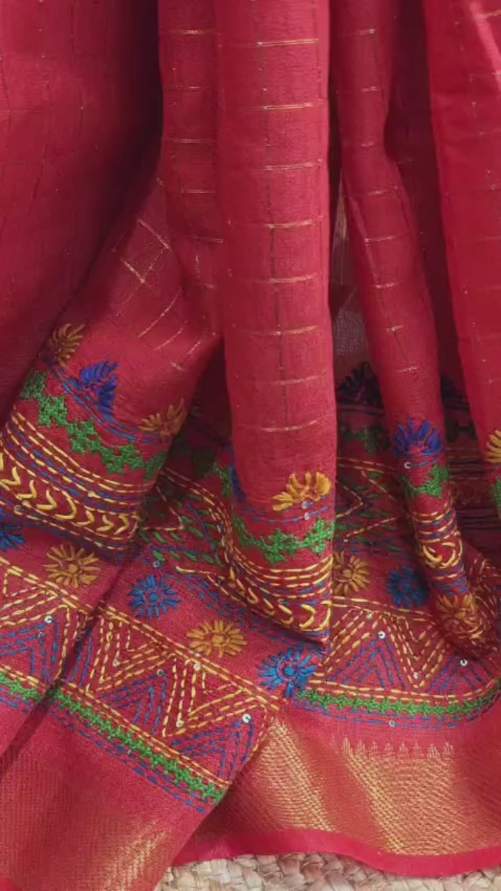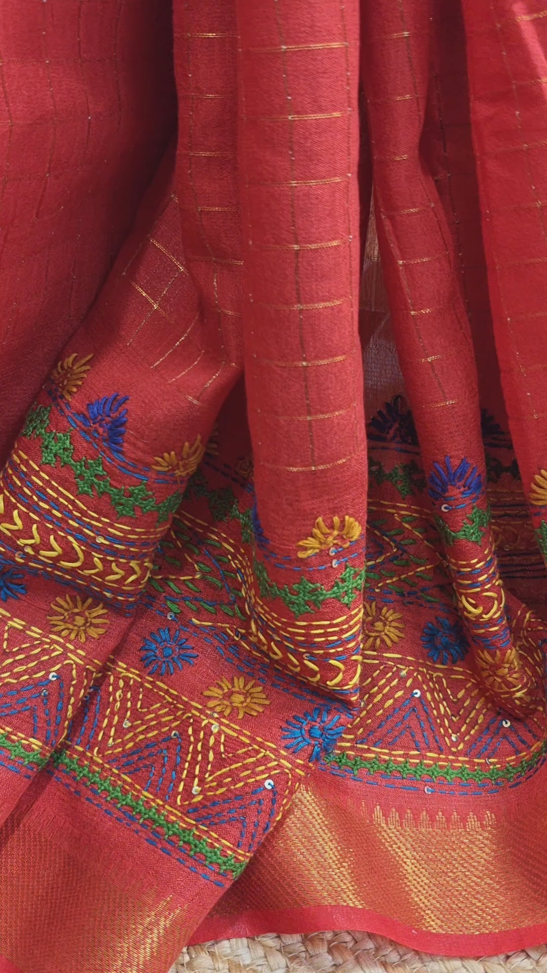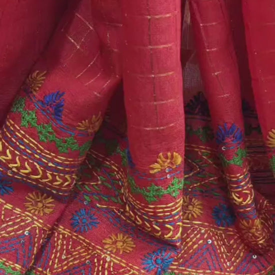 Sold out Authentic Mangalgiri Check Cotton Saree – Red Zari Border with Lumbani Handwork