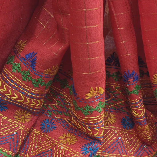 Mangalgiri Check Cotton Saree – Red Zari Border with Lumbani Handwork