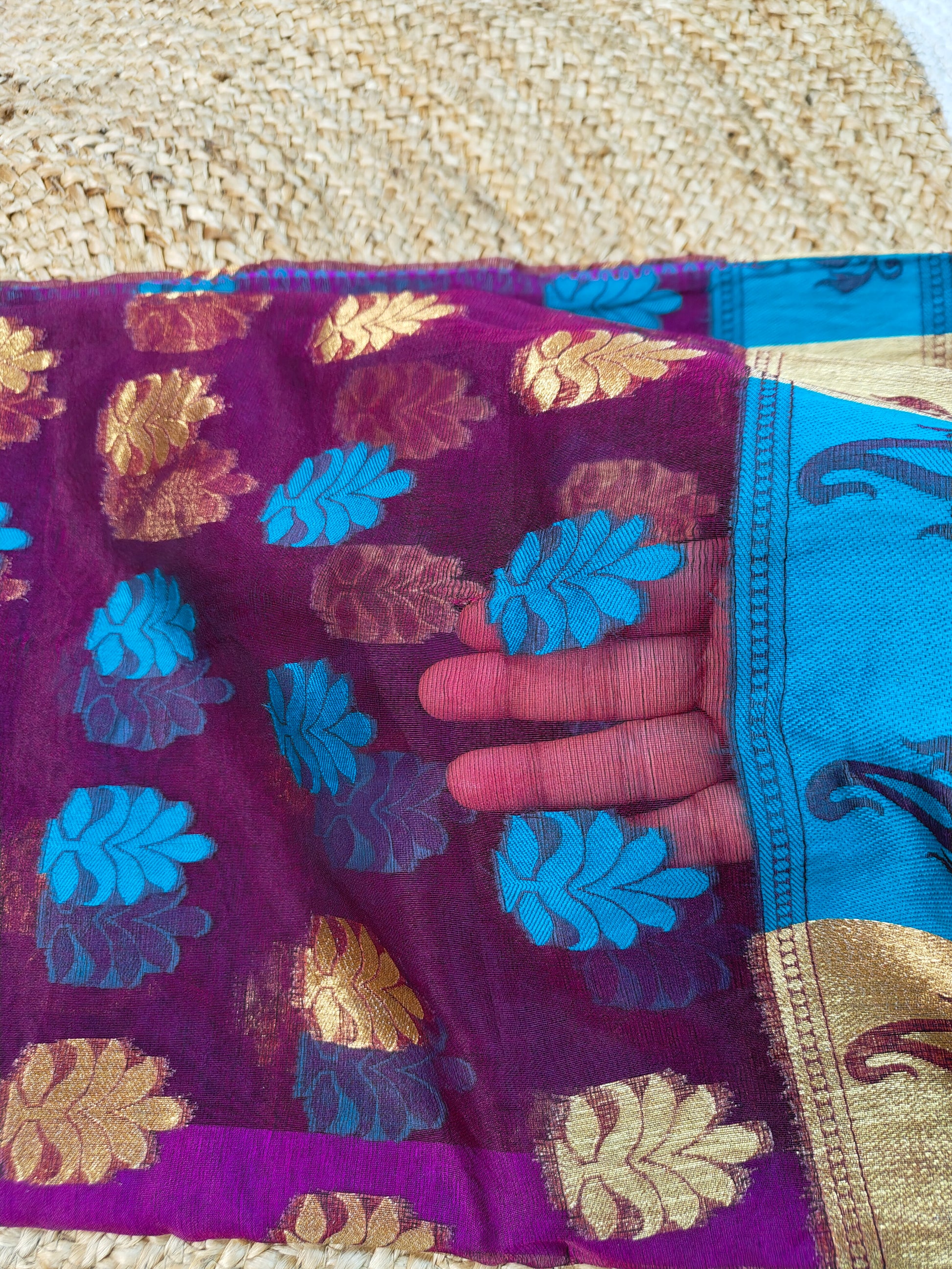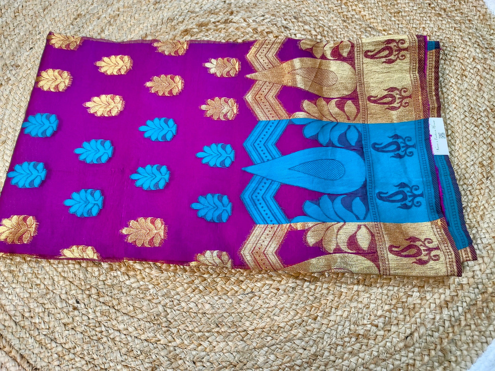 - Fabric: Soft and breathable Maslin Benarasi silk, ideal for comfortable wear while maintaining a luxurious look.