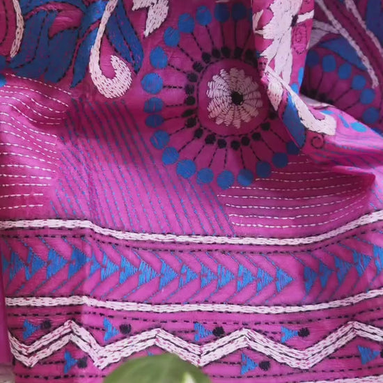 - Colour: Pink with multi-colour hand embroidery.