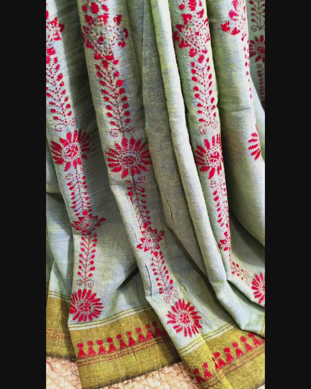 Sold out Pure Khadi Cotton Kantha Saree – A Heritage of Elegance
