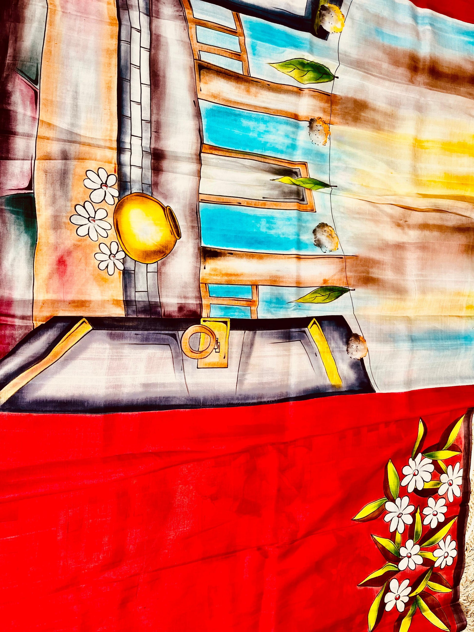 Sold out Pure Murshidabad Silk Hand-Painted Concept Saree-Sold in Bangalore