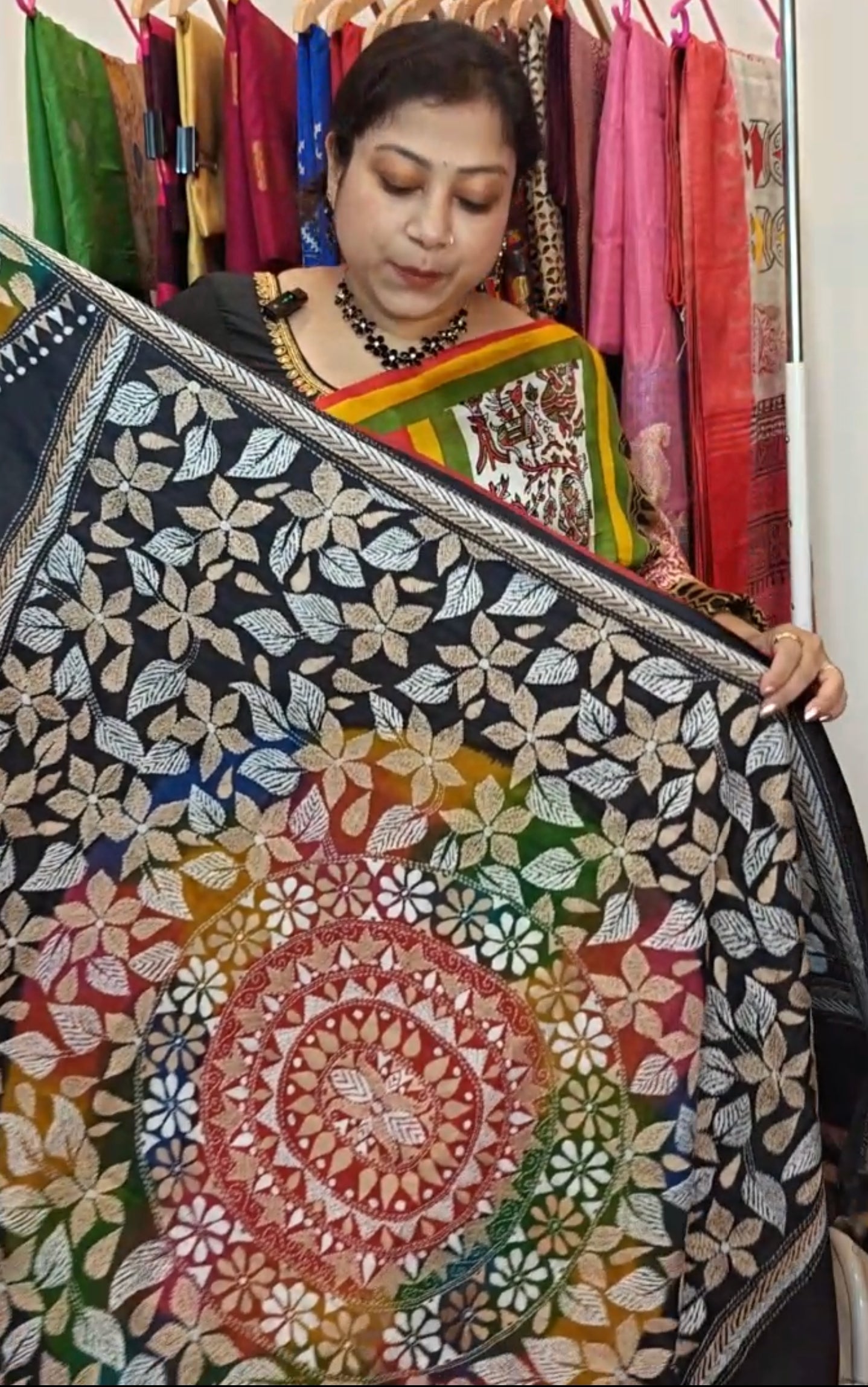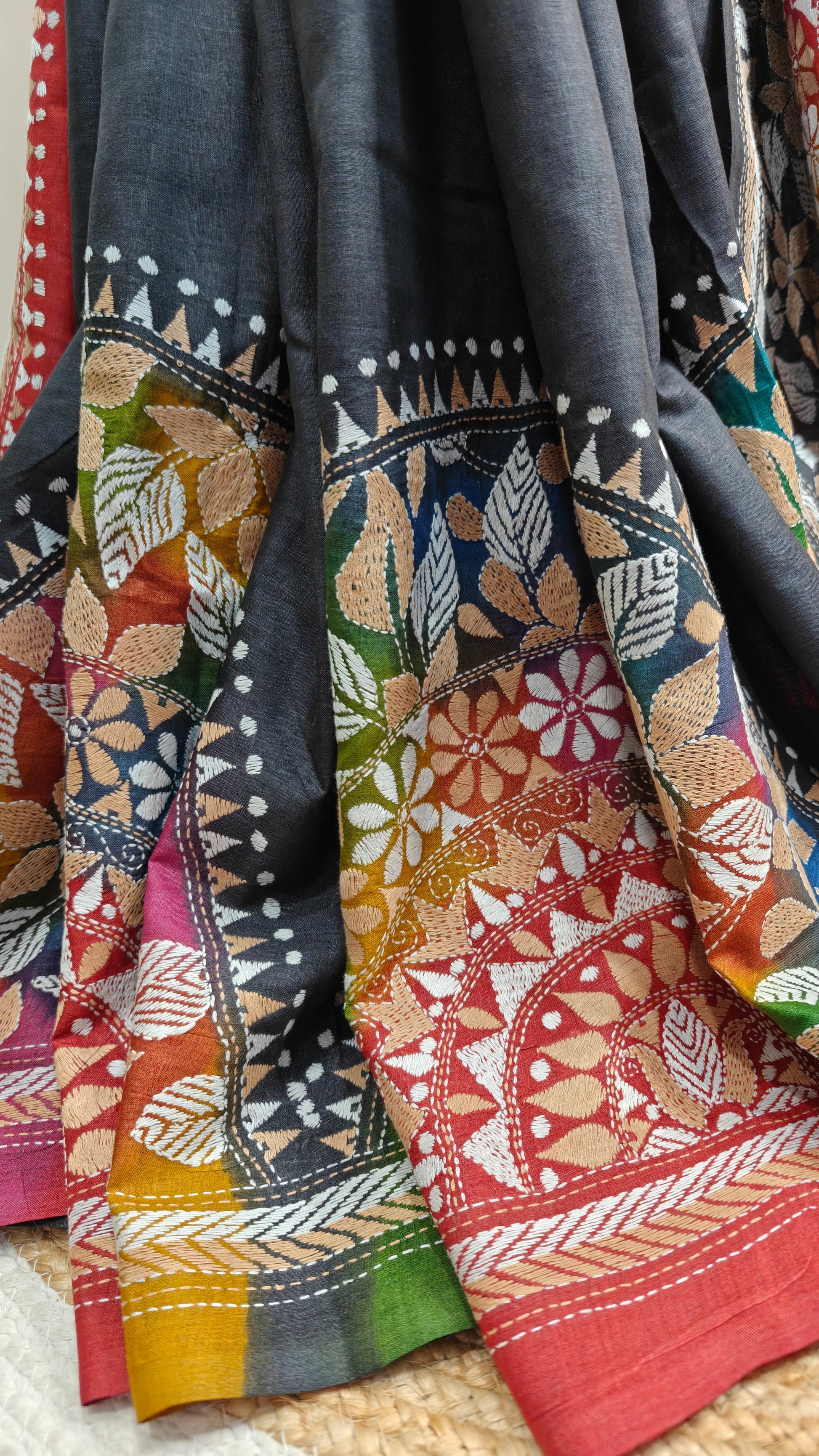 Sold out Pure Tussar Kanthastitch saree - Jewellery motif