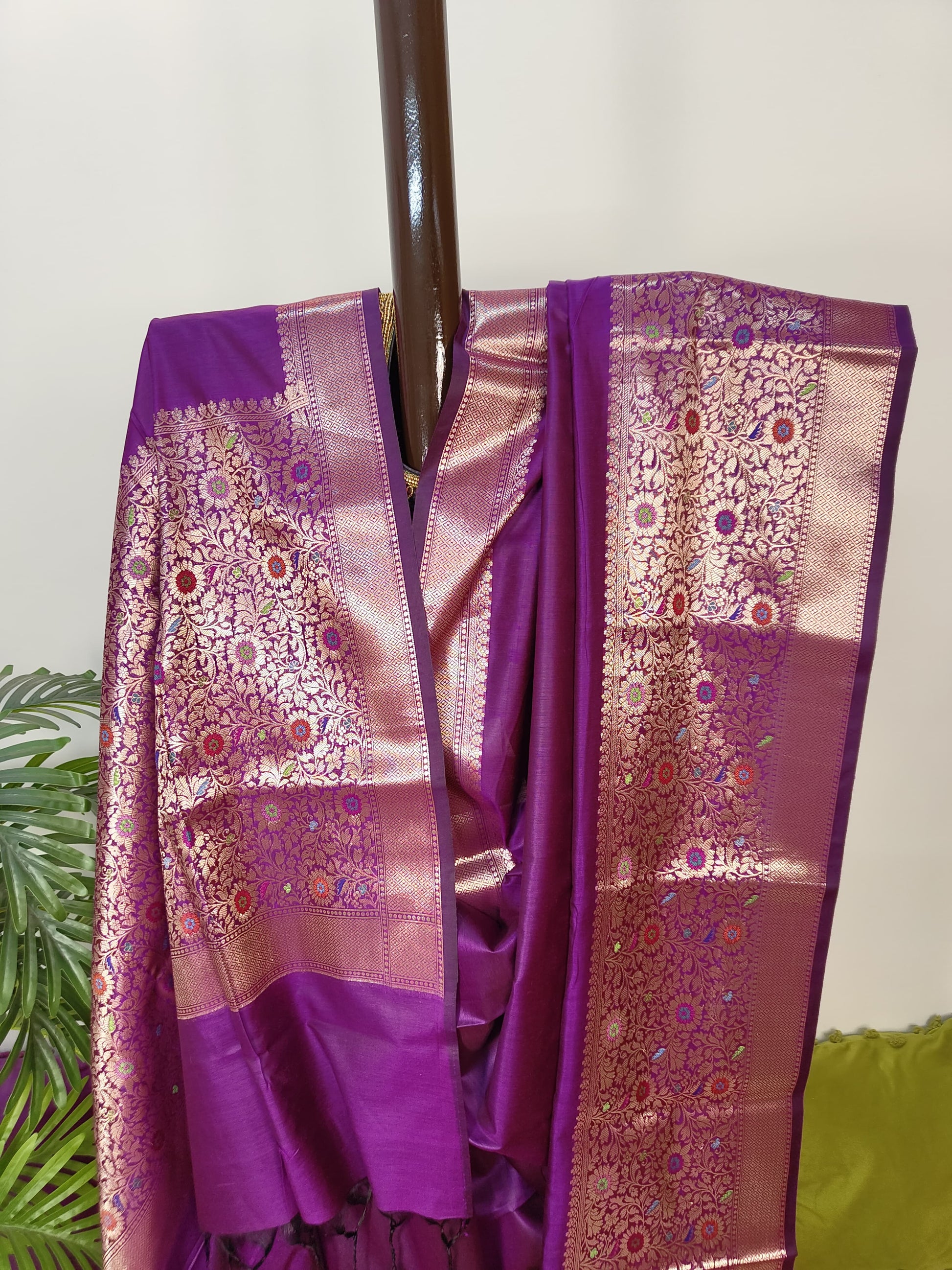 - Colour: Regal purple, adorned with exquisite Minakari zari weave.